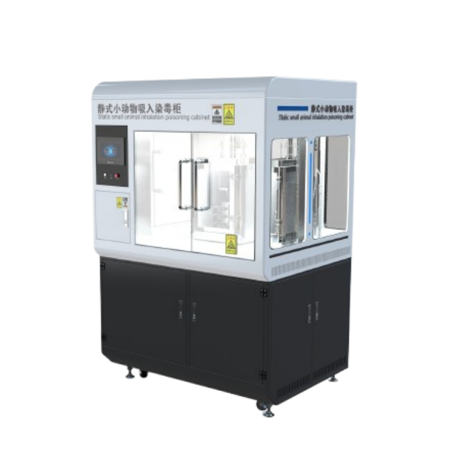 能够完成小动物全身暴露在单一浓度情况下急性静式进行染烟、气化、升华吸入染毒试验,静式染毒功能预留有动式功能接口。我司研发混合气流平衡混匀功能,保证雾化效果和实验的准确和方便,有公用的废气处理装置是可对含有试验药物的有害气体自动进行抽吸过滤向室外输送保证实验环境的安全和环保。
