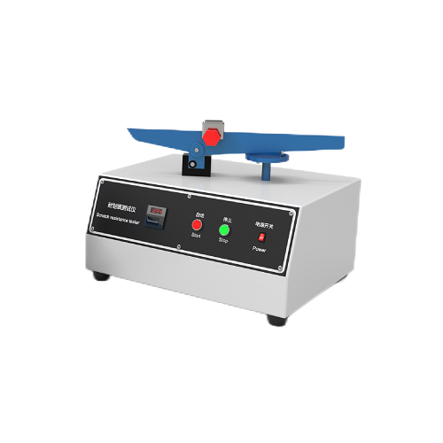 耐刮伤性试验仪其应用领域包括:刚性有机材料、涂料黏胶剂、粉末涂料,阳极氧化材料,软金属,塑料和玻璃等,也能用于测试同种材料、防护涂料的粘胶剂质量及类似材料的极限性能。仪器由平衡杆、固定砝码、调节砝码、载样圆盘等组成。试验前需根据试样的厚度调节平衡杆的高度,使平衡杆中部安装刮擦头并且试样安装于载样圆盘后,平衡杆能够保持水平。试验过程中,固定砝码不动,移动调节砝码控制压在试样上的重量。随着载样圆盘的逆时针旋转,刮擦头在试样表面留下弧形刻痕。