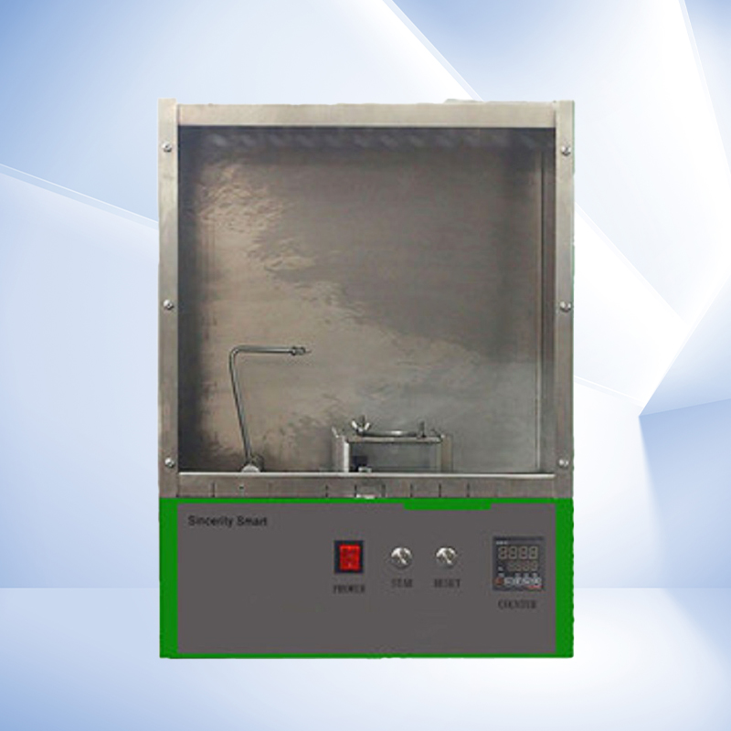 打开仪器开始按键使仪器开始工作,燃烧器点燃,开始火焰冲击,同时计时器自动开始计时。连续测试5块试样(正面或反面),待另5块试样干燥完毕后进行后续试验。