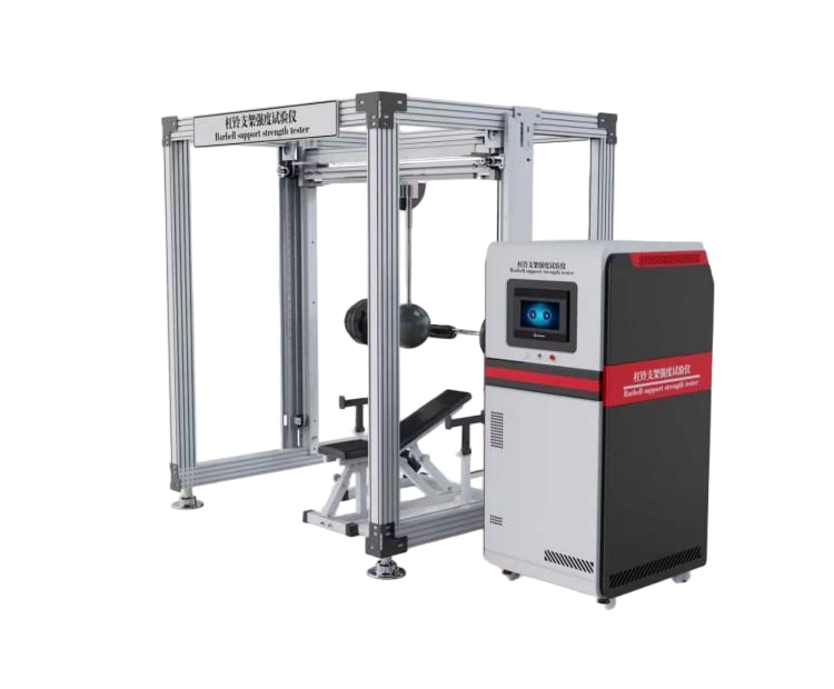 杠铃支架强度试验仪是用于检测杠铃支架承载能力和结构强度的设备,常见的有万能材料试验机和专门的健身器材静力加载实验机等PLC控制系统,支持自定义测试标准;
